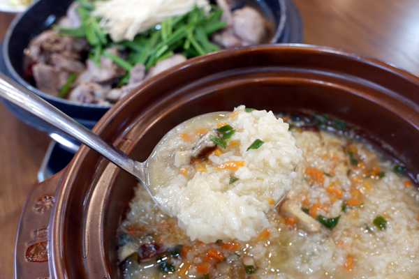 대표메뉴인 오리한방백숙은 인삼, 황기, 엄나무 등 10여가 약재를 넣고 끓인다.