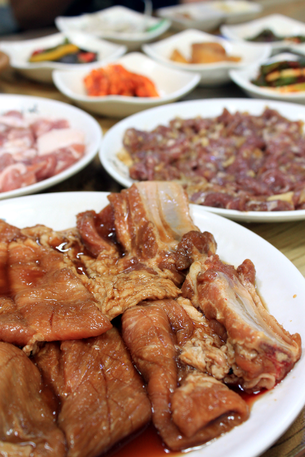 이 집은 돼지 갈비와 갈매기 부위를 직접 포를 떠 수제 양념에 재워낸다.