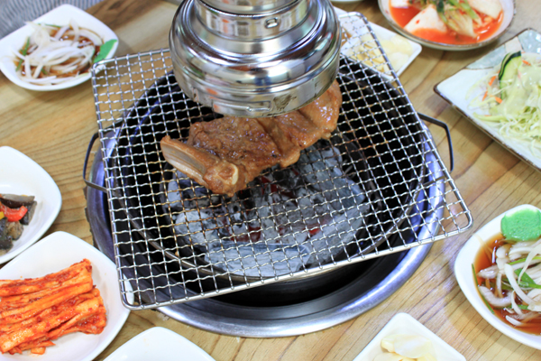 노란색 간판을 달고 있는 ‘금천숯불갈비’.