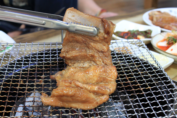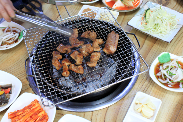 가게 입구는 무심한 표정을 갖고 있지만 주인 뒤꽁무니를 쫄쫄 따라 가게 안으로 들어서면, 잔치라도 벌어진 듯 두런두런 모여 바지런히 고기를 굽는 사람들로 가득하다.