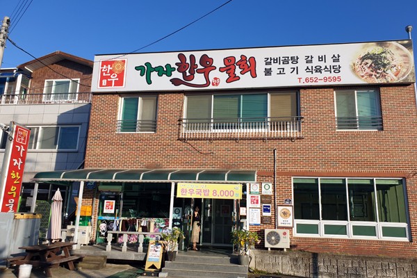 10년째 성업 중. 상호는 ‘한우물회 집으로 가자’는 뜻을 담아 주인이 지었다.생고기 즐기는 예천사람들 입맛에 맞는 요리를 고민하다가 주메뉴인 소고기 물회를 탄생시켰다. 살짝 얼린 고기를 사용해 아삭하면서 쫄깃한 식감이 특징. 예천에서는 한우 물회 메뉴가 최초다.전국적으로 등급 인정을 받은 암소 한우만 사용한다.지방이 적으면서도 감칠맛이 뛰어나기 때문이다.야채육수에 꿀이나 과일즙을 넣어 만든다. 숙취 해소와 해장에도 제격이다. 예천공설운동장에서 열심히 땀 흘린 운동선수들이 보신용으로 즐겨 찾는다.최대 100명까지 수용할 수 있을 정도로 식당 내부가 넓다. 식사 메뉴에는 겉절이 김치, 장아찌, 감자채 볶음, 깍두기 등 4종이 나온다.한우불고기 전골, 한우물회, 한우육회 비빔밥, 한우곰탕, 한우육회, 한우국밥, 한우 갈빗살, 한우 안창살과 돼지 삼겹살, 목살, 감자탕, 등뼈찜 메뉴가 있다. 물회, 비빔밥, 육회, 불고기, 곰탕 등은 포장된다.경상북도 인증 으뜸음식점, 한우판매인증점, 좋은 식단 모범음식점, 착한 가격 모범업소다.매월 일정액을 어려운 이웃을 위해 기부하는 ‘착한가게’에 가입돼 있다.자체 주차장과 청소년수련관 주차장 이용 가능.◇ 대표: 송정옥◇ 주소: 예천읍 충효로 390-3◇ 전화: 054-652-9595