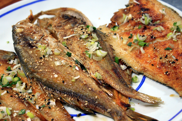 가자미, 능성어, 서대(곽대), 조기 등으로 생선구이를 한다.